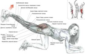 3. Разгибание бедра лёжа на полу Х 2-3 · Основные мышцы - большая ягодичная · Дополнительные - задняя поверхность бедра