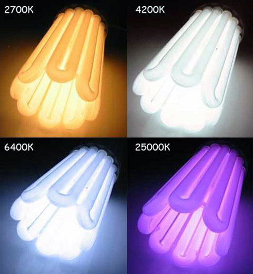 Чтобы представить себе как это выглядит в реальной жизни, рассмотрим цветовую температуру некоторых источников света:ксеноновых автомобильных ламп на рисунке (3) и люминесцентных ламп на рисунке (4).