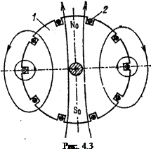 Ротор синхронной машины представляет собой электромагнит постоянного тока, который создает магнитное поле, вращающееся вместе с ротором. Ротор имеет обмотку возбуждения 4, которая через специальные контактные кольца 5 питается постоянным током от выпрямителя или от небольшого генератора постоянного тока, называемого возбудителем.