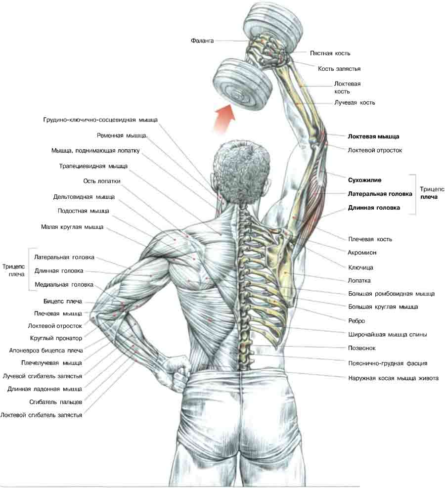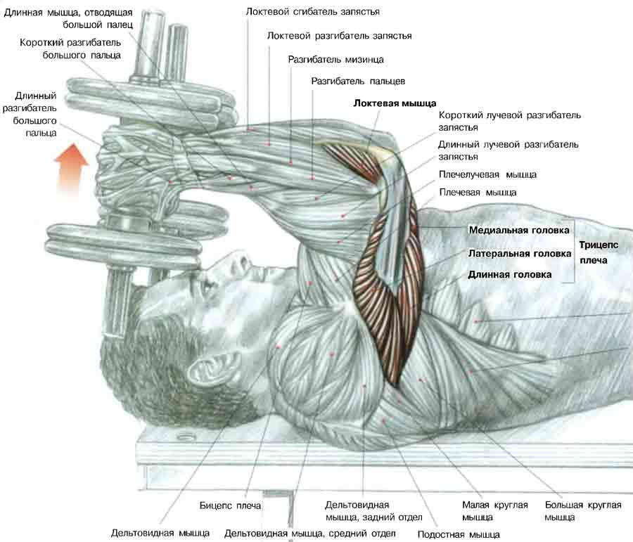 Это упражнение позволяет контролировать работу и равномерно распределять нагрузку на все три головки трицепса.