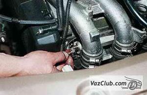Снимаем вакуумный шланг с регулятора давления топлива ваз 2110.