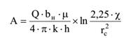 - определяют коэффициент проницаемости пласта в областидренирования скважины: