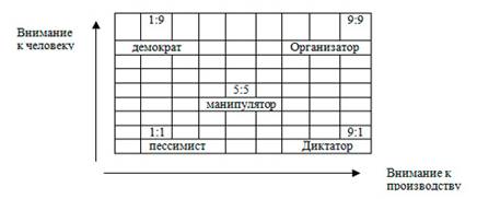 Самый эффективный стиль – позиция 9.9. Ведущие фирмы развитых стран прилагают большие усилия к поиску менеджера данного типа. Это эталон современного управляющего. Средние и крайние позиции решетки: 1.1. – страх перед бедностью. Со стороны руководителя требуется лишь минимальное усилие, чтобы не уволили. 1.9. – дом отдыха. Руководитель сосредоточен на теплых человеческих взаимоотношениях, но мало эффективен в выполнении задач. 9.1. – авторитет-подчинение. Руководитель заботится о выполнении функций, но почти не заботиться о моральной атмосфере в коллективе. 5.5. – организация. Руководитель балансирует между выполнением функциональных задач и хорошим моральным настроем сотрудников. 9.9. – команда. Руководитель добивается того, что сотрудники сознательно приобщаются к целям организации.