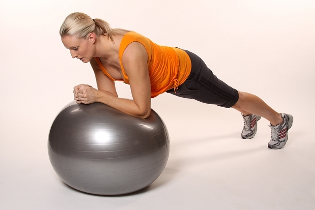 Планка на фитболе Используйте для усложнения швейцарский мяч, упираясь в него локтями, либо положив на мяч ноги.