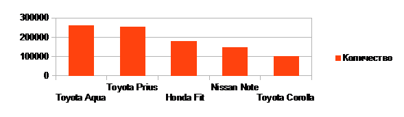 Согласно статистическим данным, количество проданных автомобилей в Японии за 2013 год, уменьшилось по сравнению с 2012 (на 200 тысяч), в то время как Китай занимает первое место в данной отрасли промышленности по продаже автомобилей (количество проданных автомобилей в Китае в 4 раз больше, чем в Японии и почти в 1,5 раз больше, чем у США). Самые высокие рейтинги японских автомобилей по продажам на мировом и внутреннем рынках принадлежат автомобилям японской марки Toyota. Помимо данной модели существует еще несколько актуальных и популярных марок автомобилей (учитывая рейтинги продаж) среди населения (см. рис. 3) [4].