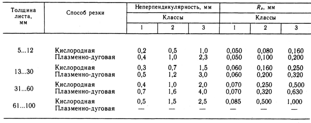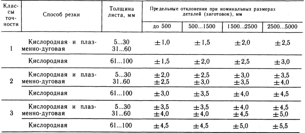 ГОСТ 14792—80 «Детали и заготовки, вырезаемые кислородной и плазменно-дуговой резкой. Точность, качество поверхности реза» предусматривает предельные отклонения номинальных размеров деталей (заготовок) в зависимости от способа резки, размеров деталей (заготовок) и толщины металла; установлено три класса точности: