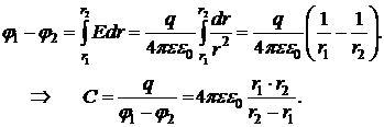 Емкость конденсатора где q – заряд конденсатора, φ1 – φ2 – разность потенциалов между обкладками.