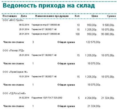 Рис. 19. Отчет «Ведомость прихода на склад»