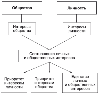 Общество представляет собой устойчивую систему взаимоотношений между людьми. Общество как система взаимоотношений между людьми оказывает воздействие на отдельные личности как его элементы. Социологи указывают на два способа воздействия общества на личность: • специально организованное воздействие на личность через воспитание, пропаганду и т. д.; • воздействие на личность через перестройку ее микросреды, условий жизнедеятельности. Человек есть продукт времени и обстоятельств, в которых он живет. Взгляды, идеи в общем случае определяются обществом; человек думает так, как его принуждает думать «дух времени». С изменением общественного строя меняется положение личности, ее интересы и потребности. Взаимоотношения личности и общества – это, прежде всего, взаимоотношение интересов. В общественных интересах выражается то, в чем заинтересовано общество в целом (развитие экономики, средств коммуникации, охраны окружающей среды и т. д.). К общественным интересам относятся и интересы социальных групп данного общества. Личные интересы выражают потребности отдельного человека, связанные с обеспечением его материальных нужд и духовных запросов. Личность — понятие, выработанное для отображения социальной природы человека, рассмотрения его как субъектасоциокультурной жизни, определения его как носителя индивидуального начала, самораскрывающегося в контекстах социальных отношений, общения и предметной деятельности