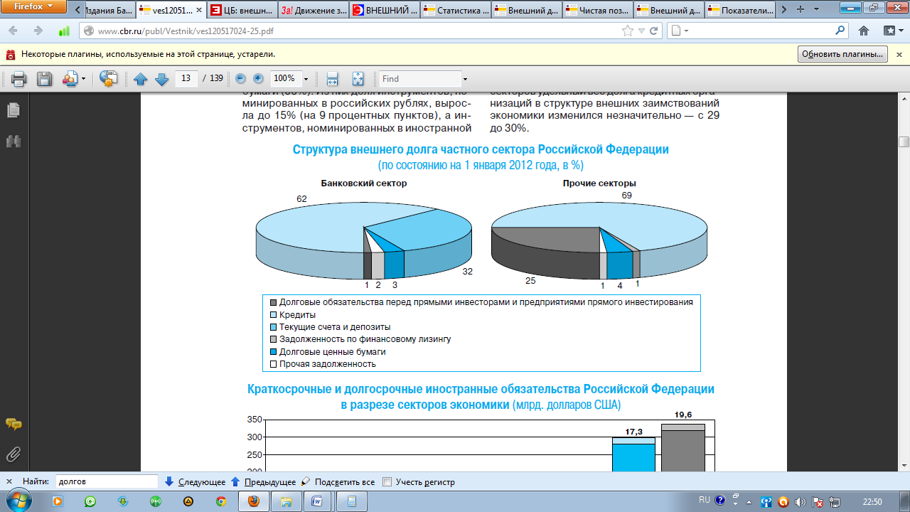 Таблица Б. 1 – Чистая позиция по внешнему долгу РФ по секторам экономики на 1 января 2012 года, млн долл США[36]