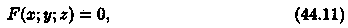 теорема существования неявной функции двух переменных: если функция F(x; у; z) и ее производные F'x(x; у; z), F'y(x; у; z), F'z(x;y;z) определены и непрерывны в некоторой окрестности точки M0(x0;y0;z0), причем F(x0;y0;z0)=0, а F'z(x0;y0;z0)≠0, то существует окрестность точки М0, в которой уравнение (44.11) определяет единственную функцию z=ƒ(х;у), непрерывную и дифференцируемую в окрестности точки (х0;у0) и такую, что ƒ(х0;у0)=z0. Функция z = ƒ (х; у) называется неявной, если она задается уравнением Date: 2015-07-27; view: 1180; Нарушение авторских прав |