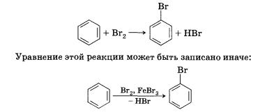 Реакции органических веществ можно формально разделить на четыре основных типа: замещения, присоединения, отщепления (элиминирования) и перегруппировки (изомеризации). Очевидно, что все многообразие реакций органических соединений невозможно свести в рамки предложенной классификации (например, реакции горения). Однако такая классификация поможет установить аналогии с уже знакомыми вам из курса неорганической химии классификациями реакций, протекающих между неорганическими веществами. Как правило, основное органическое соединение, участвующее в реакции, называют субстратом, а другой компонент реакции условно рассматривают как реагент. Реакции замещения Реакции, в результате которых осуществляется замена одного атома или группы атомов в исходной молекуле (субстрате) на другие атомы или группы атомов, называются реакциями замещения. В реакции замещения вступают предельные и ароматические соединения, такие, как, например, алканы, циклоалканы или арены. Приведем примеры таких реакций. Под действием света атомы водорода в молекуле метана способны замещаться на атомы галогена, например на атомы хлора: СН4 + Сl2 —> СН3Сl + НСl Другим примером замещения водорода на галоген является превращение бензола в бромбензол: При этой форме записи реагенты, катализатор, условия проведения реакции записывают над стрелкой, а неорганические продукты реакции — под ней. Реакции присоединения Реакции, в результате которых две или более молекул реагирующих веществ соединяются в одну, называют реакциями присоединения. В реакции присоединения вступают ненасыщенные соединения, такие, как, например, алкены или алкины. В зависимости от того, какая молекула выступает в качестве реагента, различают гидрирование (или восстановление), галогенирование, гидрогалогенирование, гидратацию и другие реакции присоединения. Каждая из них требует определенных условий. 1. Гидрирование — реакция присоединения молекулы водорода по кратной связи: СН3—СН = СН2 + Н2 -> СН3—СН2—СН3 пропен пропан