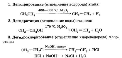 Реакции отщепления (элиминирования) Реакции, в результате которых из молекулы исходного соединения образуются молекулы нескольких новых веществ, называют реакциями отщепления или элиминирования. Примерами таких реакций может служить получение этилена из различных органических веществ.