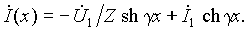 волновое сопротивление линии коэффициентом распространения g = a + j b (a — коэффициент затухания, b — коэффициент фазы). Размерность g — 1/км. Решение уравнений линии при заданных напряжении и токе в начале линии при x = 0: