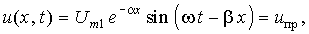 Распределение напряжения вдоль линии где Это слагаемое решения представляет собой бегущую волну, длина которой l = 2p/b. Это — прямая волна, движущаяся по линии в прямом направлении — от источника к нагрузке со скоростью v = w/b, т. е. l = 2p v /w = v / f.