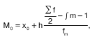 где х0 – нижняя граница интервала; h – величина интервала; fm – частота интервала; fm-1 – частота предшествующего интервала; fm+1 – частота следующего интервала. Медианой называется вариант, расположенный в центре ранжированного ряда. Медиана делит ряд на две равные части таким образом, что по обе стороны от нее находится одинаковое количество единиц со–вокупности. При этом у одной половины единиц сово–купности значение варьирующего признака меньше ме–дианы, у другой – больше. Описательный характер медианы проявляется в том, что она характеризует количественную границу значений варьирующего признака, которыми облада–ет половина единиц совокупности. При определении медианы в интервальных ва–риационных рядах сначала определяется интервал, в котором она находится (медианный интервал). Этот интервал характерен тем, что его накопленная сумма частот равна или превышает полусумму всех ча–стот ряда. Расчет медианы интервального ва–риационного ряда производится по формуле:
