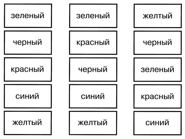 Далее таким же образом для запоминания предлагаются 2, а затем и 3 комбинации цветных карточек. На последующих занятиях комбинации цветов меняются. Вариант 2 Для занятия вам потребуется 5 разноцветных карточек, цветные карандаши или фломастеры тех же цветов, лист бумаги. Карточки демонстрируются по одной с интервалом в 3 секунды и складываются последовательно, чтобы потом можно было бы проверить правильность ответа. После демонстрации всех карточек ребенок на несколько секунд закрывает глаза и мысленно представляет себе последовательность цветов. Затем он на листе бумаги должен восстановить ее при помощи карандашей или фломастеров. Проверка правильности производится путем повторной демонстрации карточек. Затем демонстрируется другая комбинация. Если занятие проводится в группе, то правильность выполнения определяется путем самоконтроля или в парах. «Инопланетяне-1» Для занятия вам потребуется рисунок, на котором изображены 3 инопланетянина, цветные карандаши, лист бумаги. Вы говорите ребенку, что в город прилетели 3 инопланетянина и необходимо внимательно изучить их портреты, запомнив все детали внешнего вида гостей. После этого демонстрируется рисунок с изображением инопланетян. На запоминание дается 30 секунд и рисунок убирается. Вы даете ребенку задание: «К тебе в гости спешит второй инопланетянин. Закрой глаза, представь его внешний вид и точно нарисуй портрет второго по счету инопланетянина».
