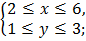 1. Множество называется открытым, если все его точки внутренние. 2. Множество называется замкнутым, если оно содержит все свои граничные точки. 3. Множество называется ограниченным, если все его точки содержатся в некотором шаре. 4. Множество называется связным, если любые две его точки можно соединить непрерывной произвольной линией, целиком принадлежащей данному множеству. 5. Открытое связное множество называется областью. Пример: Построить область Dизменения переменных 1) 2) 3) 4) Решение: 1) Этим неравенствам удовлетворяют координаты любой точки, находящейся внутри и на границе прямоугольника, стороны которого лежат на прямых