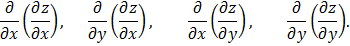 Аналогично определяются частные производные более высоких порядков. Частные производные, образованные дифференцированием по различным аргументам, называются смешанными частными производными. Например, смешанные производные 2–го порядка функции двух переменных суть Среди смешанных производных одного порядка выделяют производные: 1) отличающиеся количеством дифференцирований по одноименным аргументам (например, 2) отличающиеся лишь порядком дифференцирования по аргументам (например, Теорема о равенстве смешанных частных производных: Теорема: Если смешанные частные производные, отличающиеся лишь порядком дифференцирования, непрерывны в некоторой точке, то их значения в этой точке равны. Date: 2015-07-27; view: 402; Нарушение авторских прав |