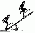 132. Прыжки на двух (одной)ногах вниз по наклонной дорож-ке-склону от 5° до 35°. Следить за вертикальным поло-жением туловища и активным отталкиванием.