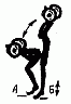 152. Из положения в наклоне со штангой на плечах на полусогнутых ногах (А) выпрыгивание вверх с выпрямлением тела (Б) и с возвращением при приземлении в исходное положение (А). Предварительно выполнить наклоны с отягощением без выпрыгивания.