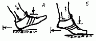 176. Разные способы крепления опоры для стопы (А, Б) при наклонах тела вперед для укрепления сводов стопы.