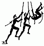234. Лазание по вертикальному каналу в три приема:поднять согнутые ноги до прямого угла и зажать канат стопами и бедрами, опираясь ногами выпрямить их и подтянуться на руках вверх - согнуть руки, затем поочередный перехват руками вверх, повиснув на них поднять ноги и т.д., то же по наклонному канату.
