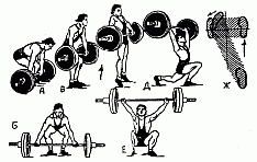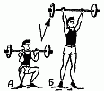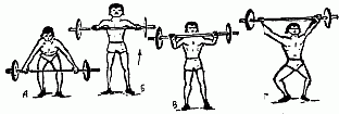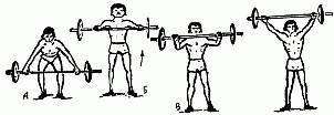 Специальные подготовительные упражнения первой группы (А) воздействуют одновременно на все или на большинство двигательных звеньев. К ним относятся разновидности упражнений со штангой. Выполняйте эти упражнения технически правильно как это принято в тяжелой атлетике.