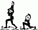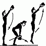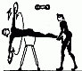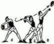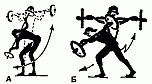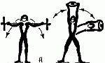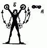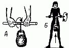 361. Подъем и опускание гири на воротке, поочередными поворачиваниями кистями рук палки (разной толщины), на которой подвешена гиря А, Б.