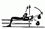 299. Лежа на скамейке подъем гирь вверх от груди, из-за головы, держась ногами за скамейку.