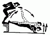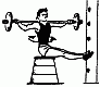 481. Выталкивание гири разного веса (8-16 кг) с активным разгибанием ноги и тела.