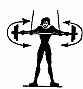 516. Вращение двумя руками рукоятки эспандера вокруг головы, вставая в различные положения по отношению к месту прикрепления амортизатора - спиной, боком, лицом.