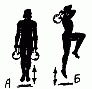 483. Выбрасывание гири с виса одной рукой с поворотом с участием ног, правой (А) -левой (Б) руки.