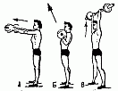 298. Подъем гирь вверх на вытянутые руки поочередно от плеч.
