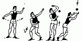 498. Бросок мяча из-за головы с активным замахом и участием ног.