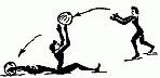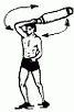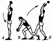 474. Броски одной рукой с замахом над головой из положения натянутого лука легких предметов (ядер, камней, гантелей- 1-4 кг).