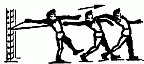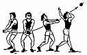 487. Метание большой гантели (12-16 кг) в высоту через планку на результат, соревнуясь по правилам прыжков в высоту.