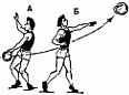 475. Метание набивных мячей, лежащих на разной высоте на уровне плеч (А), то же на уровне таза (Б).