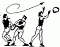 488. Метание палки, резинового шланга одной рукой с поворотом.