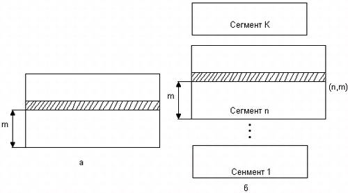 Рис. 5.2. Виртуальные адресные пространства нескольких программ Совпадение виртуальных адресов переменных и команд различных процессов не приводит к конфликтам, так как в том случае, когда эти переменные одновремеино присутствуют в памяти, операционная система отображает их на разные физические адреса1. 1 В том случае, когда необходимо, чтобы несколько процессов разделяли общие данные или коды, операционная система отображает соответствующие участки виртуального адресного пространства этих Процессов на один и тот же участок физической памяти. См. раздел «Разделяемые сегменты памяти» В разных операционных системах используются разные способы структуризации виртуального адресного пространства. В одних ОС виртуальное адресное пространство процесса подобно физической памяти представлено в виде непрерывной линейной последовательности виртуальных адресов. Такую структуру адресного пространства называют также плоской (flat). При этом виртуальным адресом является единственное число, представляющее собой смещение относительно начала (обычно это значение 000...000) виртуального адресного пространства (рис. 5.3, а). Адрес такого типа называют линейным виртуальным адресом. В других ОС виртуальное адресное пространство делится на части, называемые сегментами (или секциями, или областями, или другими терминами). В этом случае помимо линейного адреса может быть использован виртуальный адрес, представляющий собой пору чисел (и, т), где n определяет сегмент, а т — смещение внутри сегмента (рис. 5.3, б). Существуют и более сложные способы структуризации виртуального адресного пространства, когда виртуальный адрес образуется тремя или даже более числами.