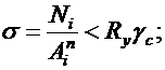 Требуемая площадь сечения элемента для растянутых элементов для сжатых элементов где Сечения элементов фермы принимаются (при раскреплении ее связями из плоскости фермы через узел) следующие: