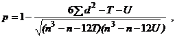 где d – ранговая разность; n – число пар вариантов. Варианты факторного признака х располагаются по возрастанию, затем проставляются ранги для вариантов результативного признака у (упорядочивание по одному из признаков обязательно при вычислении В случае совпавших рангов вычисляются поправки Т и U: