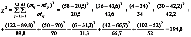 В таблице 2 в круглых скобках показаны теоретические частоты: