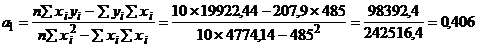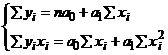 Применительно к измерению связей здесь У представляет собой результативный признак, Х – факторный признак, а0 и а1 – параметры прямой, а само уравнение называется уравнением регрессии. Нахождение этих параметров производится на основе выравнивания по способу наименьших квадратов, которые приводят к системе двух линейных уравнений с двумя неизвестными:
