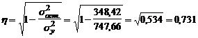 что свидетельствует о наличии связи между признаками. Подставив в формулу корреляционного отношения: вместо