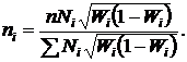 При отборе с учетом вариации признака, дающем минимальную величину ошибки выборки, процент выборки из каждой стратифицированной группы должен быть пропорционален среднему квадратическому отклонению в этой группе ( для средней