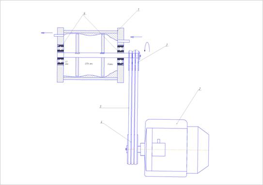 Параметры РДА: диаметр ротора – 100 мм, частота вращения электродвигателя – 3000 об/мин, частота вращения ротора РДА – 10200 об/мин, соотношение шкивов – 3,3:1, линейная скорость на периферии ротора – 70 м/сек, поликлиновой ремень. В РДА с двумя дисками на валу – организовано 3 камеры, 3 зоны. Вода (или другая технологическая жидкость), поступая в зону 1 через отверстие, расположенное как можно ближе к центральной оси аппарата, достигая вращающегося диска ротора отбрасывается им к периферии и через узкий зазор между диском ротора и статором поступает во вторую камеру. Во второй камере вода уже не имеет возможности «упасть» на вал ротора удерживаемая в периферийной зоне аппарата центробежной силой. Находясь между двумя вращающимися дисками ротора, вода образует своеобразный «чулок», прилегающий к цилиндрической поверхности статора. Если в первой камере фиксируемое давление составляет 0,4 атм, то во второй камере – 0,135 атм. В третьей камере – регистрируемое давление – 4-4,5 атм. Изменение показателей давления зависит от расхода воды в аппарате.