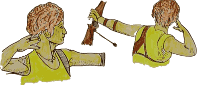 Обработка выстрела - последняя фаза в растягивании лука, прицеливании и дотягивании, которая заканчивается выстрелом - отходом стрелы от тетивы. Прицельный выстрел осуществляется следующим образом. Заняв позицию для стрельбы (лук в опущенной руке), оценив ее правильность (отношение к мишени, постановка ног, головы и др.) и ознакомившись с объективными условиями выполнения предстоящего выстрела, стрелок поднимает лук и, удерживая его в руке (вытянутой в сторону мишени), принимает изготовку, натягивает тетиву, направляет лук мушкой в центр мишени и, удерживая эту направленность, возобновляет растягивание, но уже очень медленно, не мешая неподвижности всей системы "стрелок-лук". На фоне этого дотяга в момент, когда стрела вышла из-под кликера (при условии, что лук не изменил своей направленности мушкой на середину мишени), и производится отрыв тетивы. Дотягивание начинается с перемещения стрелы из-под кликера и заканчивается щелчком. По этому звуковому сигналу начинается освобождение тетивы, которое заканчивается полным отделением тетивы от подбородка. Действия стрелка по выпуску тетивы должны Date: 2015-07-27; view: 377; Нарушение авторских прав |
