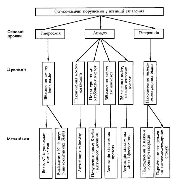 6. Материалы для самоконтроля: A. Задание для самоконтроля: 1. Показать в виде схемы процесс образования брадикинина плазмы и производных арахидоновой кислоты. 2. Назвать молекулярные механизмы повреждения клеток при вторичной альтерации. 3. Схематически изобразить патогенез артериальной и венозной гиперемии при воспалении. 4. Представить в виде таблицы приспособительные и собственно патологические реакции местного и общего характера при воспалении. B. Задачи для самоконтроля: 1. У экспериментального животного вызвали гнойное воспаление бедра. Опишите механизм первичной и вторичной альтерации при этом. 2. Для лечения ожога использовали мазь с гидрокортизоном. Какой механизм действия гормона на воспалительный процесс? 3. Гнойный экссудат имеет рН 5,3. Объясните, с чем связана такая величина рН и на какие процессы при воспалении это влияет.