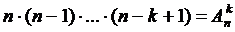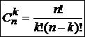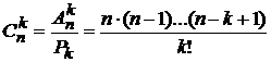 o Перестановкой из k элементов называется совокупность этих же элементов, записанных в произвольном порядке. Pk-число перестановок из k элементов. o Произвольное k-элементное подмножество множества n элементов называется сочетанием из n элементов по k элементов. Сочетание—это неупорядоченная выборка объема k из n элементов. Обозначается число всех сочетаний из n элементов по k элементов через